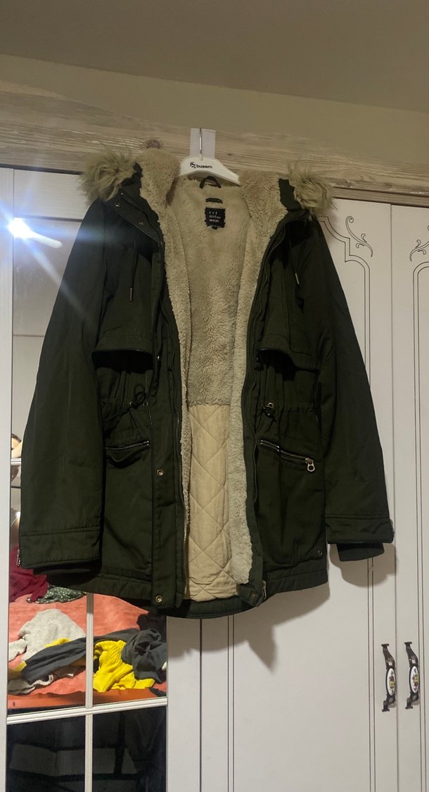 Fermuarlı yapılacak sadece Gri, midi boy, kürklü detaylı, bol kesim kadın mont. Notlu yaka, uzun kollu ve yumuşak iç yüzeye sahiptir. Rahat ve sıcak tutar.