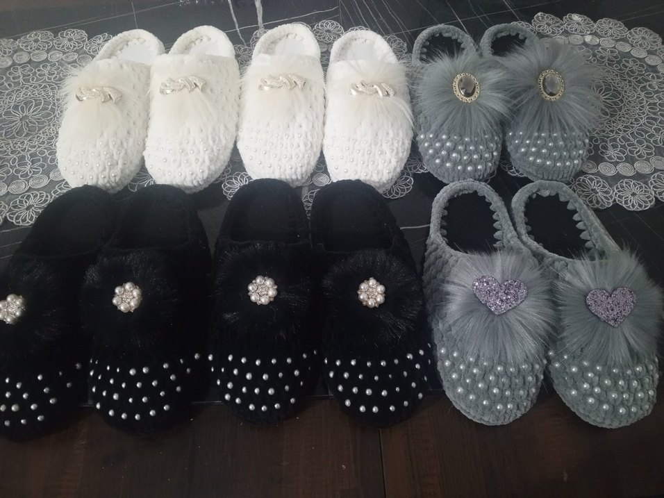 Gri renkte, kürklü detaylı ve nakışlı desenlere sahip kadın terlikleri, klasik şıklık sunar ve günlük kullanım için uygundur.