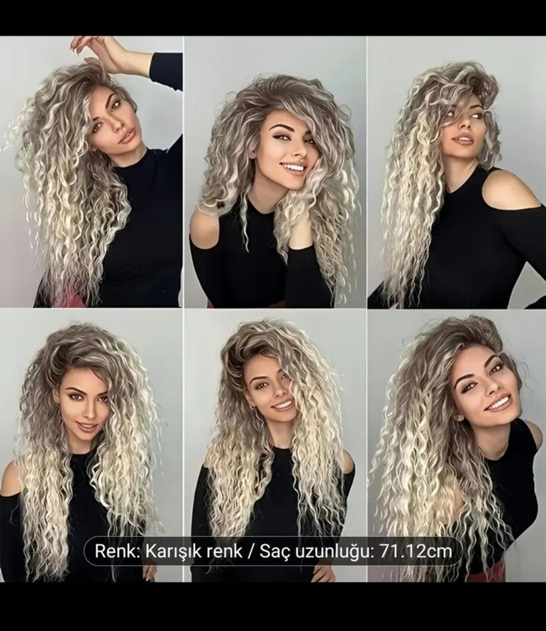 Pamuklu, kürklü detaylı, cesur gri renkte 71,12 cm uzunluğunda afiro peruk