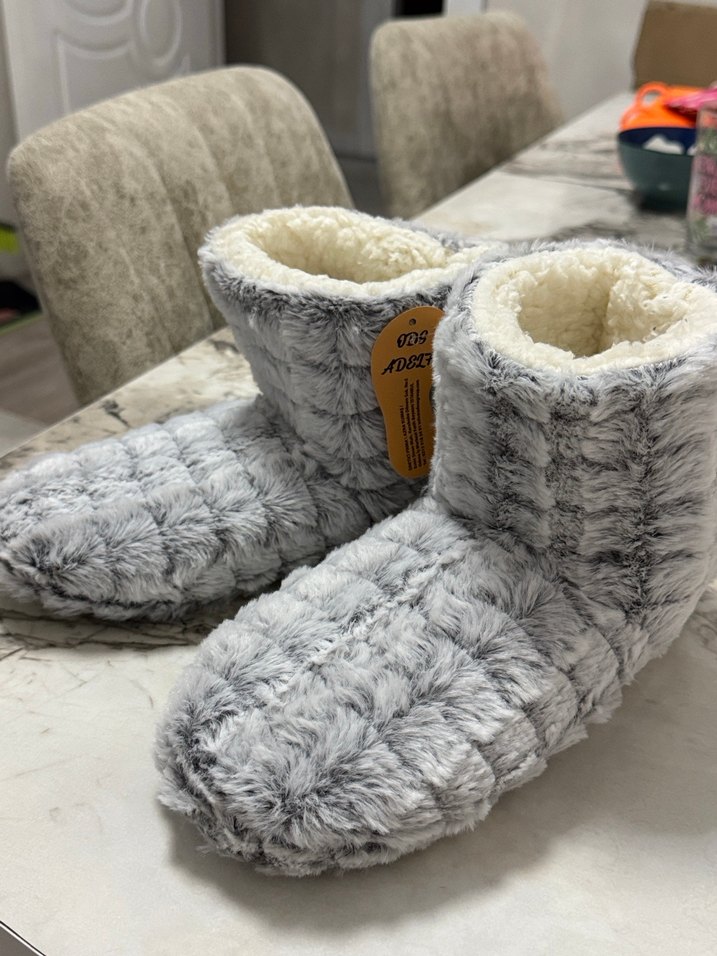 Kızlar için yumuşak ve sıcak kumaştan, kürklü detaylı gri zebra desenli ev terliği. Ayağıma olmadı benim o yüzden satıyorum.