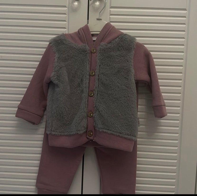 Gri Kürklü Uzun Kollu Bebek Kız Takımı