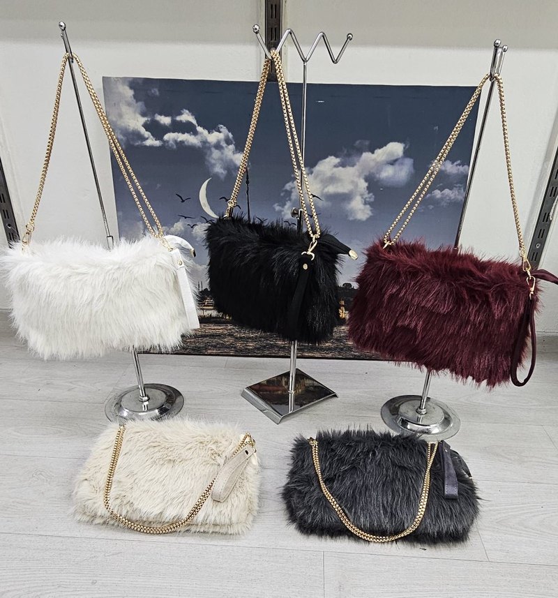 Gri Kürklü Zincir Askılı Kadın Çanta