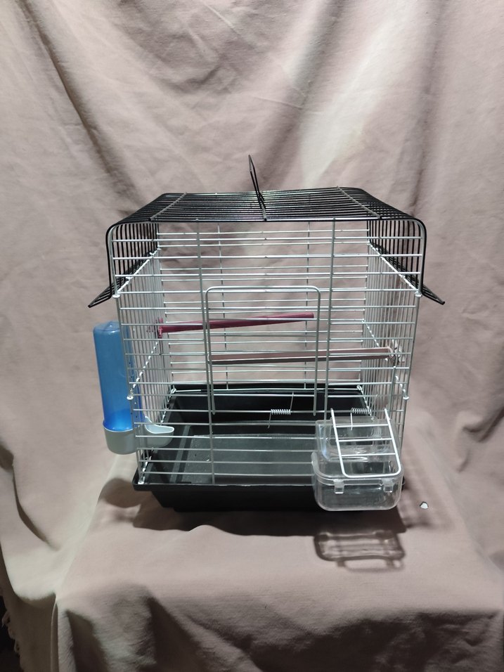 Gri Kuş Kafesi Yemlik ve Suluklu sıfır ürün