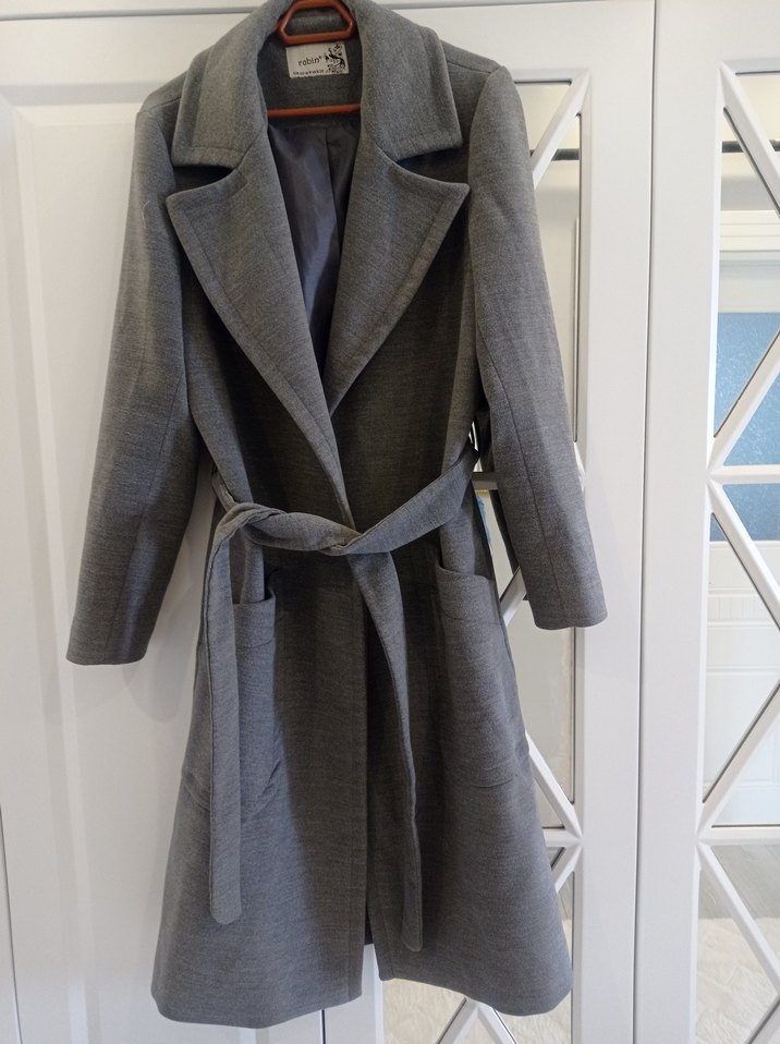 Gri renkte, kuşaklı uzun kaban. Büyük yakaları ve yan cepleriyle klasik ve şık bir görünüm sunar.ürün kaşedir tüylenme falan yoktur