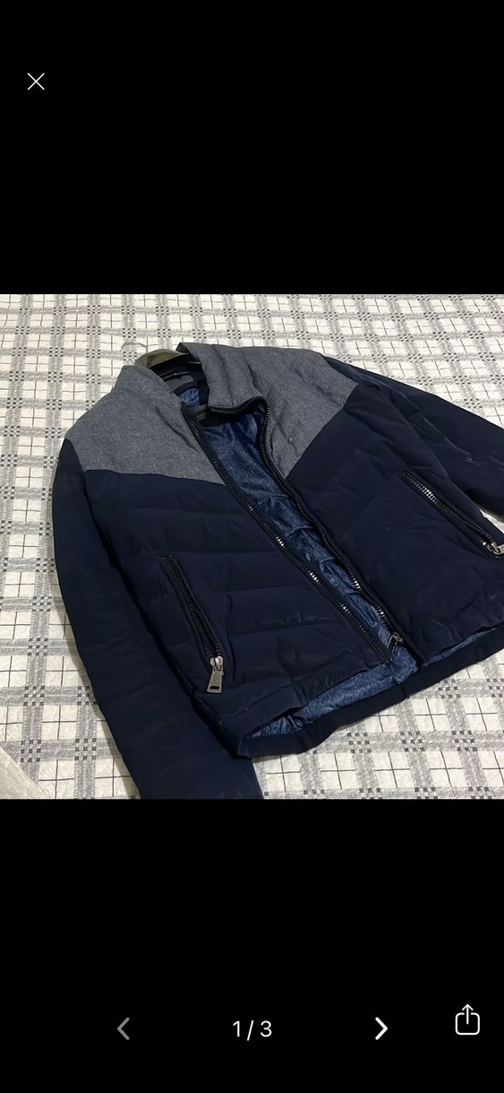Bu erkek mont, fermuarlı ön kısmı ve uzun kollara sahip, yumuşak ve sıcak tutan kumaştan yapılmıştır. Normal kesim, kesik yakalı ve midi boyda, günlük sokak stili için uygundur. Mont, gri ve lacivert renklerde ve desensizdir.