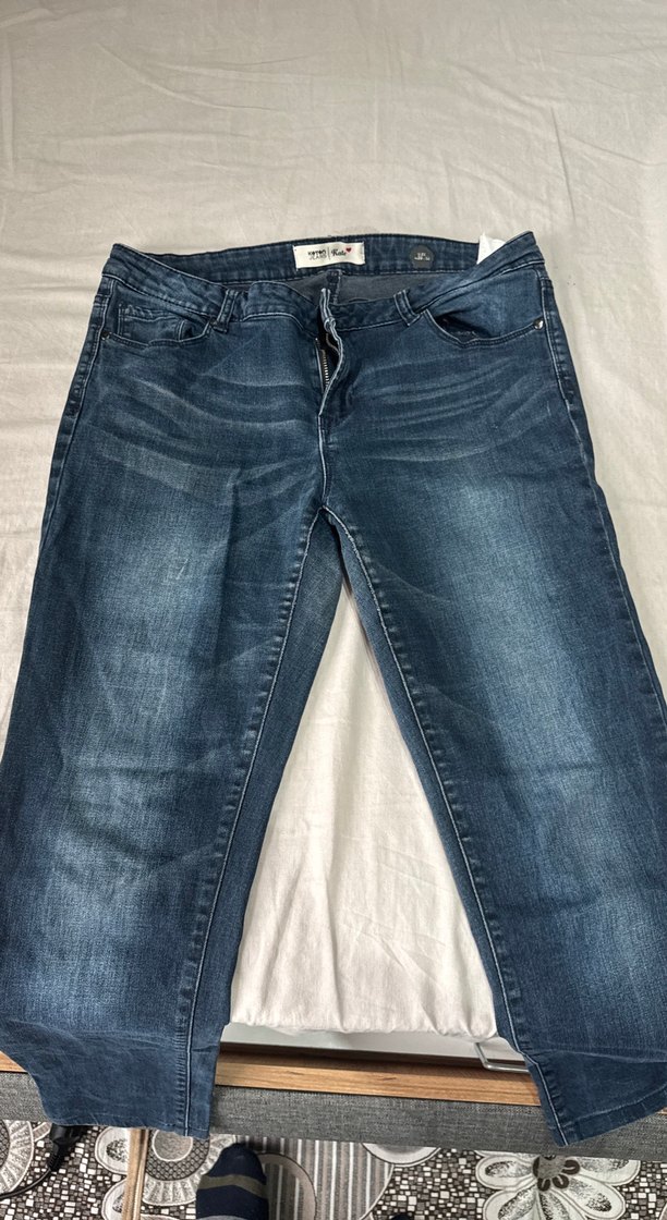Gri lacivert renkte, bol kesim ve normal midi boyda kadın denim pantolon. Tokalı detayı ve sade deseniyle günlük rahat kullanıma uygundur.