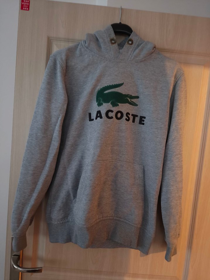 Gri renkli Lacoste sweatshirt, uzun kollu Baskılı logo kapüşon detayıyla, rahat kesim ve yumuşak, sıcak kumaştan üretilmiştir.