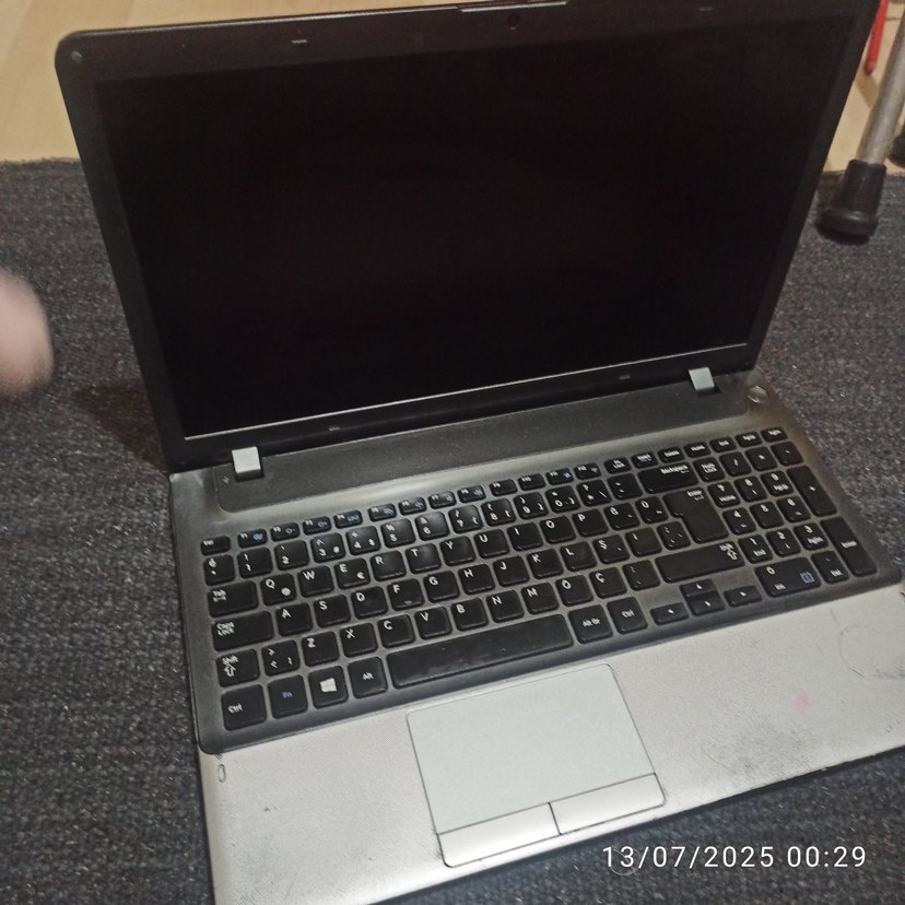 Gri renkte, standart klavyeli ve dokunmatik yüzeyli laptop bilgisayar. Ekran alanında 3/07/2025 tarihi görünüyor.