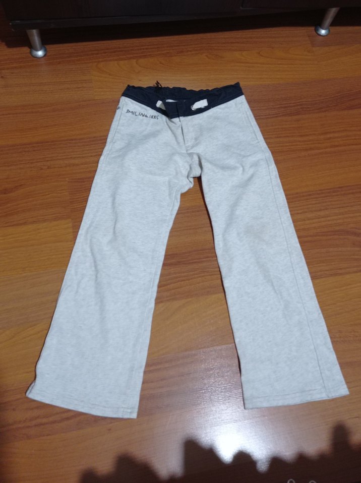 Gri renkte, bol kesim çocuk eşofman. düşükbel. ayarlanabilir lastikli. iki iplik. tarz bir model. yurtdışı ürünüdür. açık bir gri tonu. sorunsuz. yeni. temiz. sayılı giyildi. #pantolon #eşofman #gri
