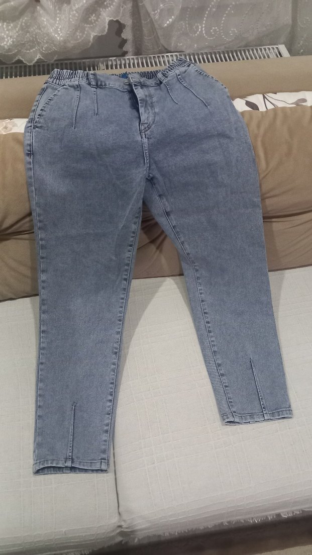 Gri Lastikli Midi Boy Kadın Kot Pantolon