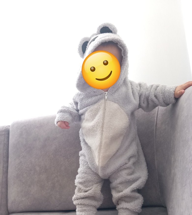 Gri renkte, leopar desenli ve kabarık yapıda yumuşak ve sıcak kumaştan yapılmış bebek tulumu. Kulaklı kapüşonu ile sevimli bir görünüm sunar. ❄️