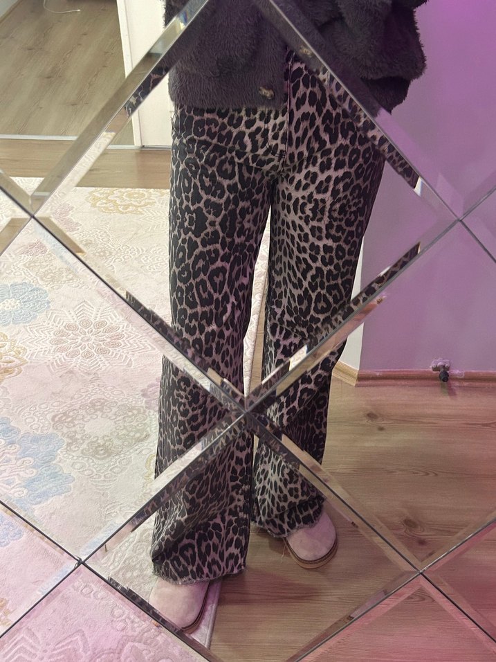 Gri leopar desenli, salaş kesim günlük sokak stiline uygun kadın pantolon. Neredeyse yenidir solma, yırtık vs yoktur. Boy:170 kilo: 55