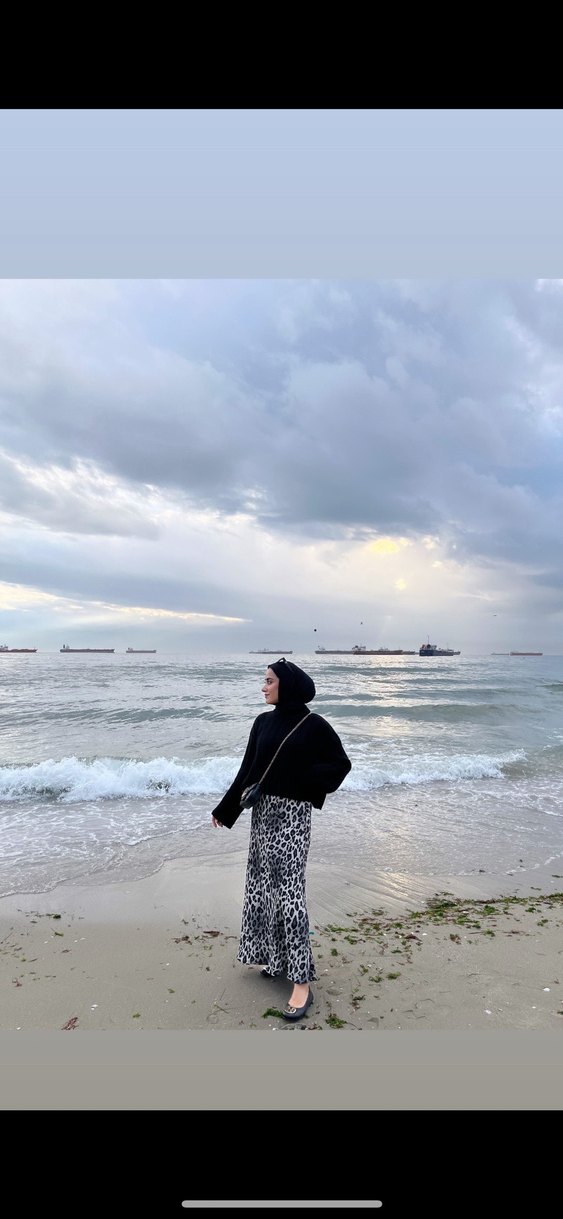 Gri Leopar Desenli Uzun Triko Kadın Yağmurluk