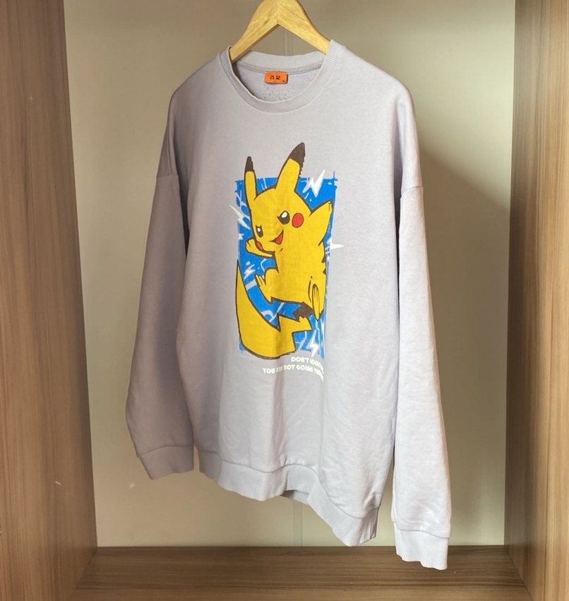 Gri renkli, uzun kollu, yuvarlak yaka ve bol kesim kadın sweatshirt. Önünde renkli Pikachu baskısı ve örme dokusu bulunan yumuşak ve sıcak kumaştan üretilmiştir.