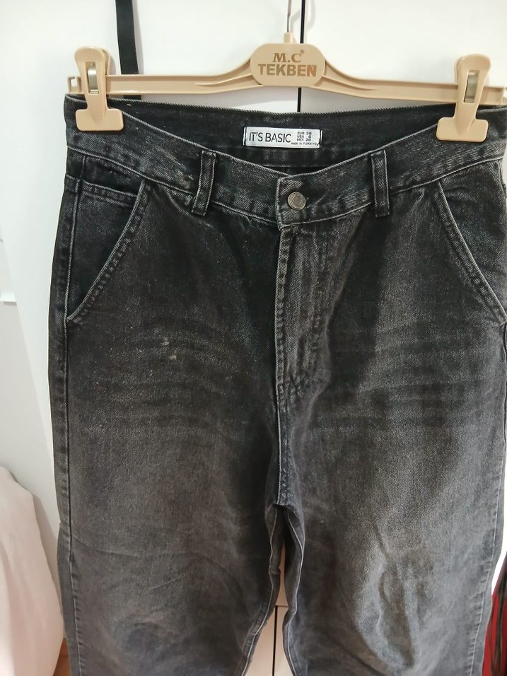 siysh renkli, normal boyda, bol kesim denim kadın pantolon, rahat ve gündelik tarz için uygundur. Desensiz ve normcore stilde şık bir seçimdir.