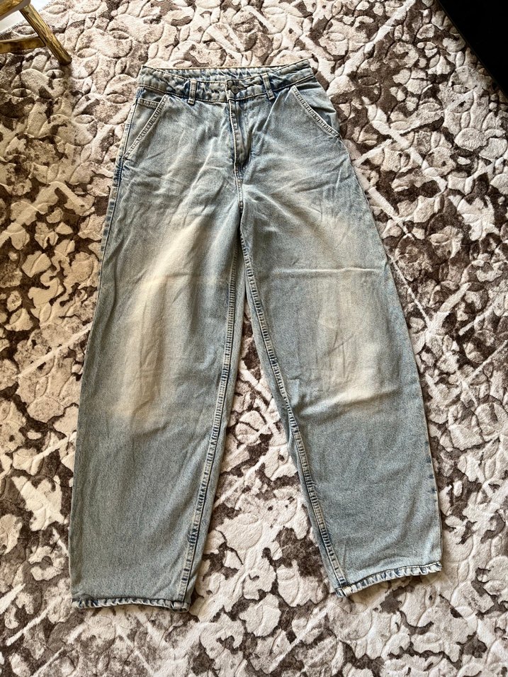 Gri renkli, loose fit kesime sahip midi uzunlukta kadın denim pantolon. Günlük kullanıma uygun, rahat ve şık bir görünüm sunar.