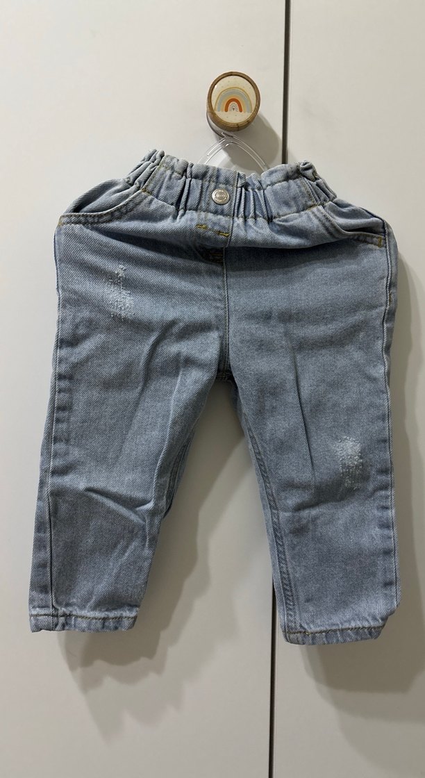 Gri renk, düğmeli ve bol kesim kız denim pantolon. Sokak stiline uygun rahat bir tasarım. Açık mavi renktedir