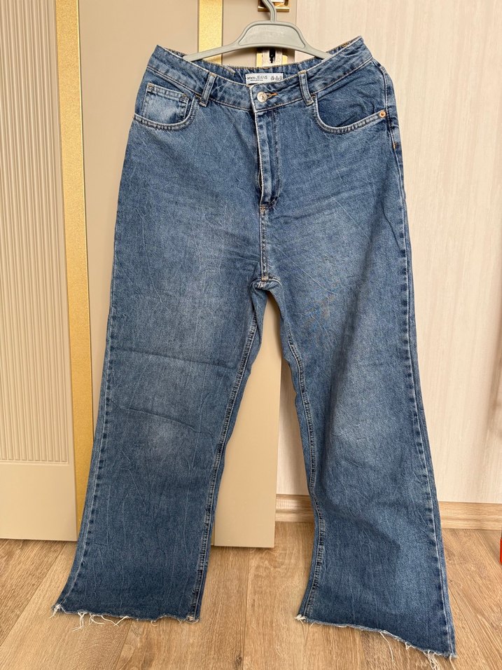 Gri tonlarında, loose fit ve midi boyda normal uzunlukta kot pantolon. Desensiz, günlük kullanıma uygun rahat ve şık bir model.