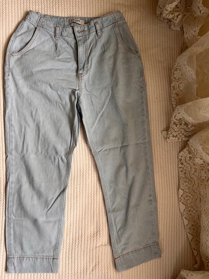 Gri renkli, loose fit kesim midi boy kot pantolon. Desensiz sade tasarımıyla günlük kullanıma uygun, zahmetsiz şıklık sunar.