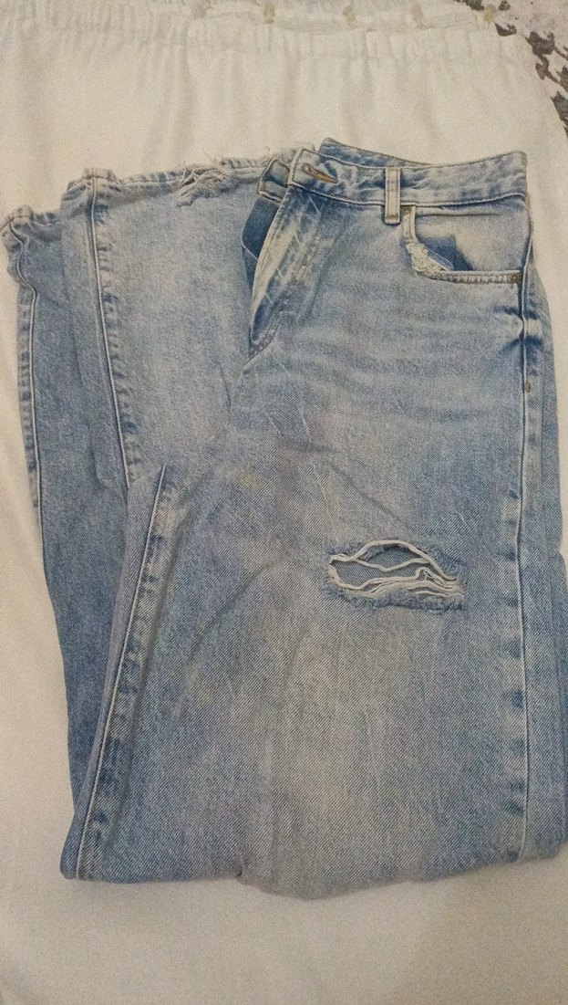 Gri tonlarında, bol kesim ve midi boyda kadın kot pantolon. Sokak stiline uygun, tokalı ve hafif yırtık detaylı, günlük kullanıma uygun jeans.