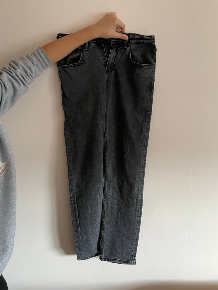 Gri renkli, normal boy midi kot pantolon, bol kesim ve denim kumaştan üretilmiştir. Günlük kullanım için rahat ve şık bir tercih sunar.