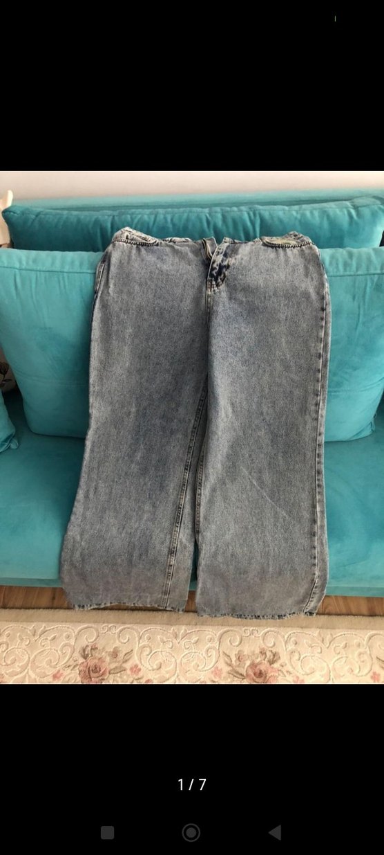Gri renkli, rahat kesim, normal boy midi kot pantolon, kemer detaylı, günlük sokak tarzına uygun.