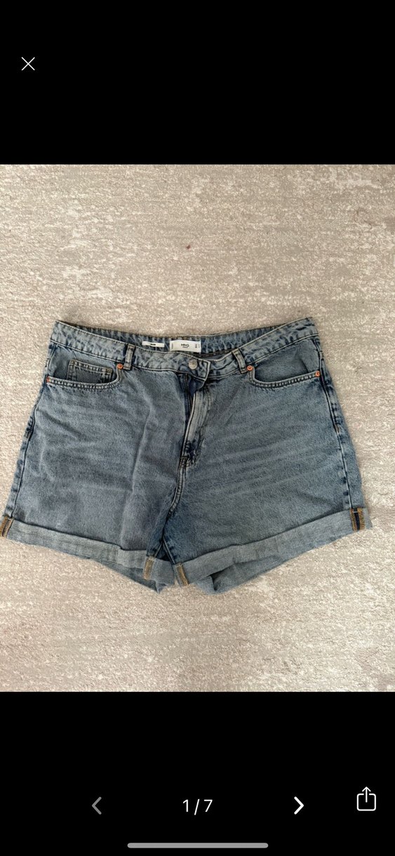 Gri renkli, bol kesim mini denim şort, katlanmış paça detaylı. Günlük kullanım için uygun, desen içermeyen rahat bir tasarım.