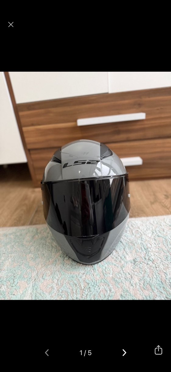 Metal gövdeli, tokalı, gri LS2 motosiklet kaskı. Koyu vizörlü, sade ve minimalist tasarıma sahip. ️