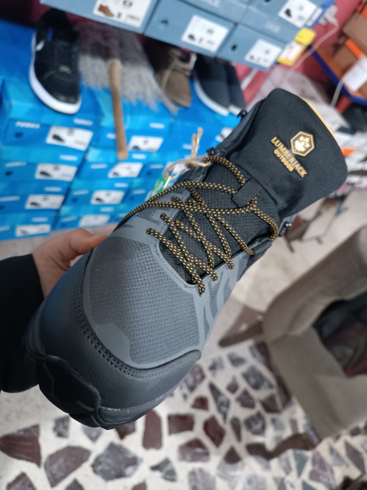 Gri yılan desenli, kauçuk tabanlı outdoor ayakkabı. sıfır ürün kapalı kutu su geçirmez