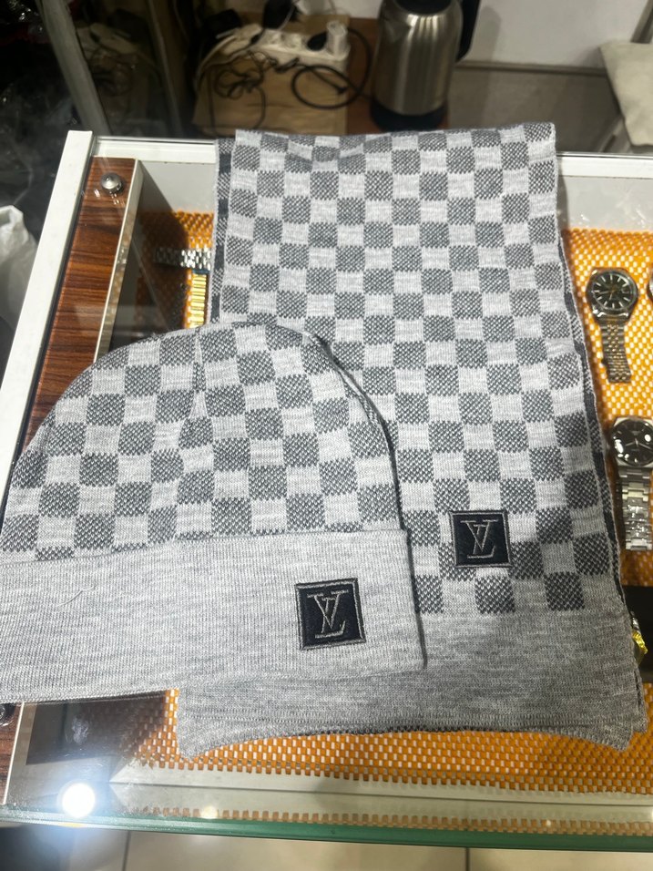 Gri renk LV atkı bere setidir sıfır jelatinli etiketlidir stoğu mevcuttur mağaza ürünümüzdür likralı pamuklu kumaştır herkese keyifli alışverişler