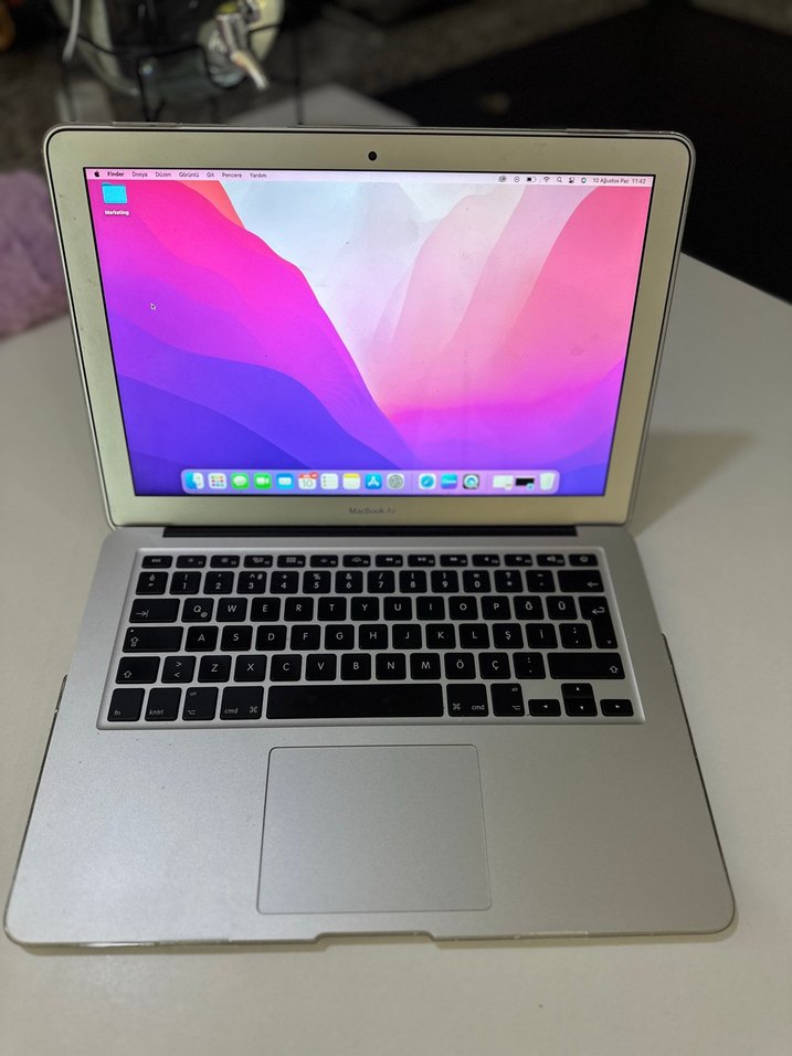 Gri MacBook Air dizüstü bilgisayar, 13 inç ekran, arkadan aydınlatmalı klavye ve geniş touchpad ile macOS işletim sistemi kullanır.