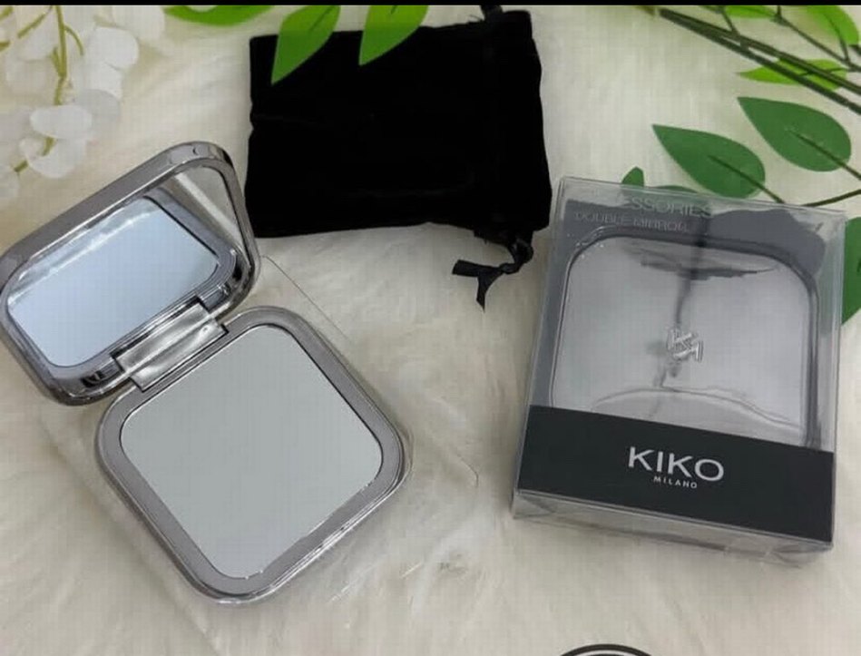 Gri renkte kompakt makyaj aynası, taşıma için yumuşak siyah kılıf ile birlikte gelir. Şık tasarımıyla kolayca makyajınızı tazelemenize olanak tanır.