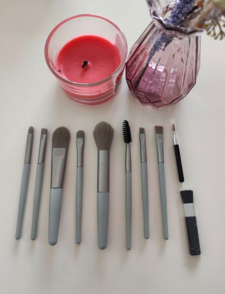 Farklı makyaj uygulamaları için çeşitli gri makyaj fırçalarından oluşan set, yumuşak kıllara ve ergonomik saplara sahiptir.sıfır ürün.