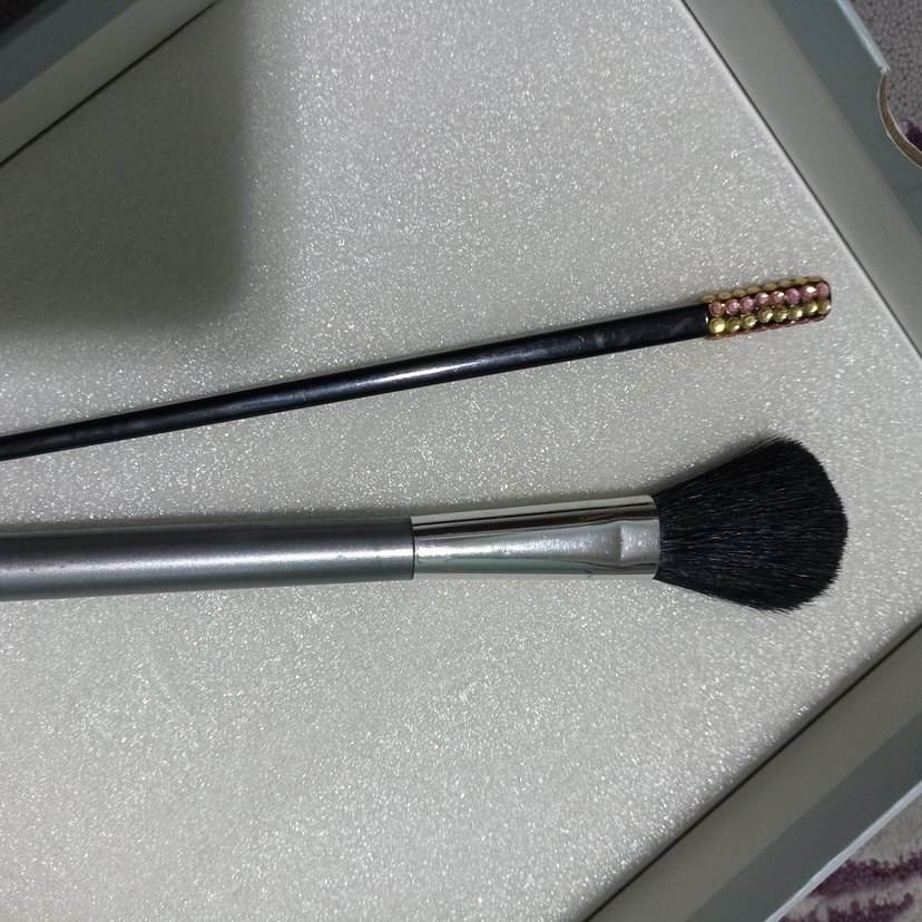 Yumuşak kıllara ve şık bir sap tasarımına sahip gri makyaj fırçası, pürüzsüz makyaj uygulaması için uygundur. ✨