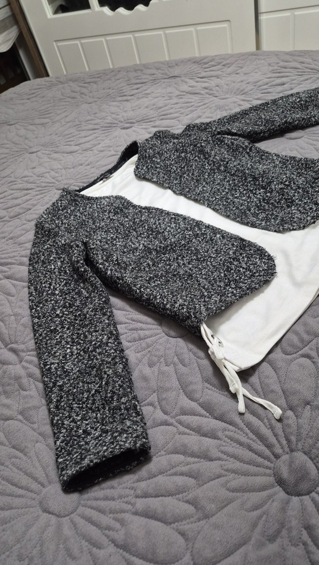 Bu kadın ceket, gri renkte örme dokulu, uzun kollu ve kısa kesimdir. Yumuşak sentetik kumaştan, günlük sokak stili ve kumaş takımlar ile kombin yapılabilir.