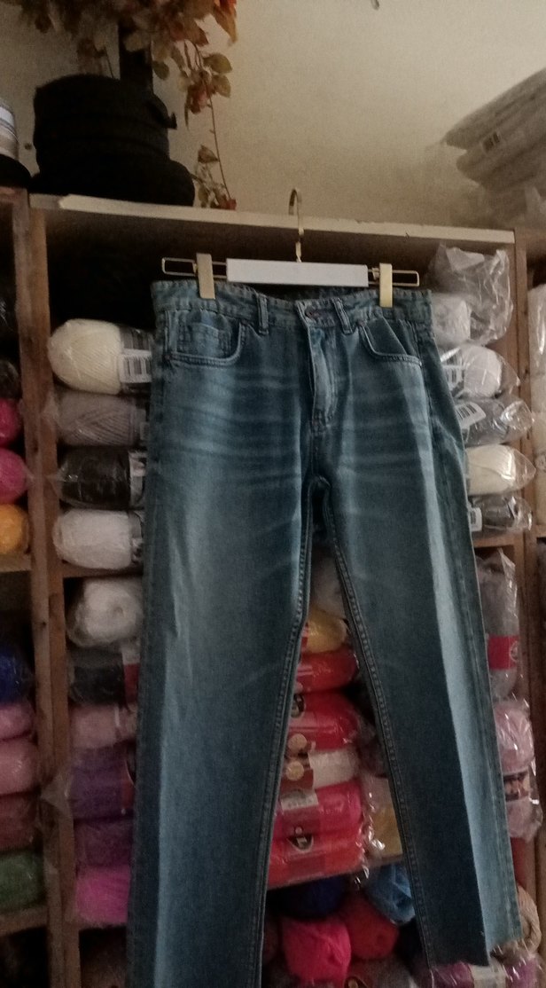 Bağcıklı detaylı, gri-mavi tonlarında, midi boy regular fit kadın denim pantolon. Günlük rahat kullanıma uygundur.