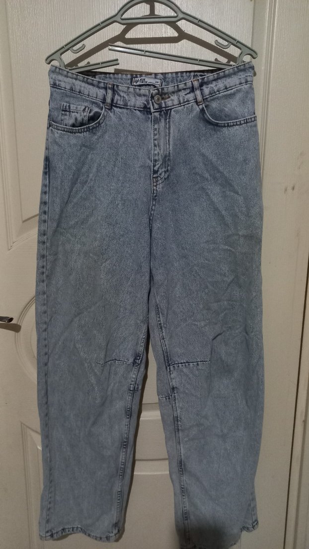 Gri mavi renkte, salaş kesim baggy pantolon belden ayarlanilabilir 3 kez giyildi iyi durumda