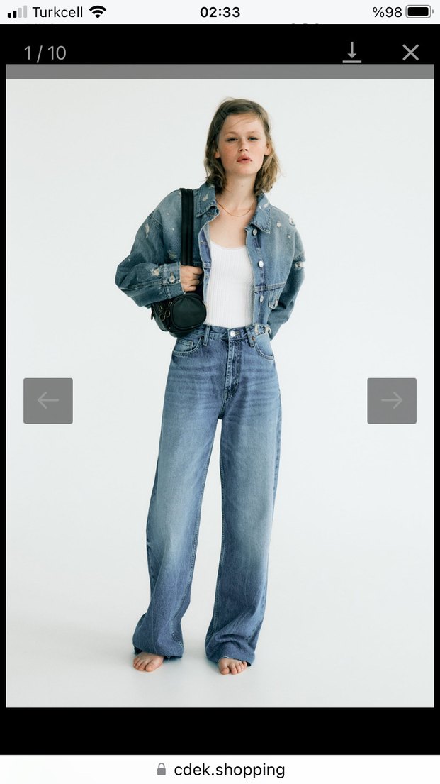 Mavi-gri bağlama desenli bol kesim denim pantolon, günlük kullanıma uygun rahat ve zahmetsiz şıklık sunar. Etiketli orjinal ürün