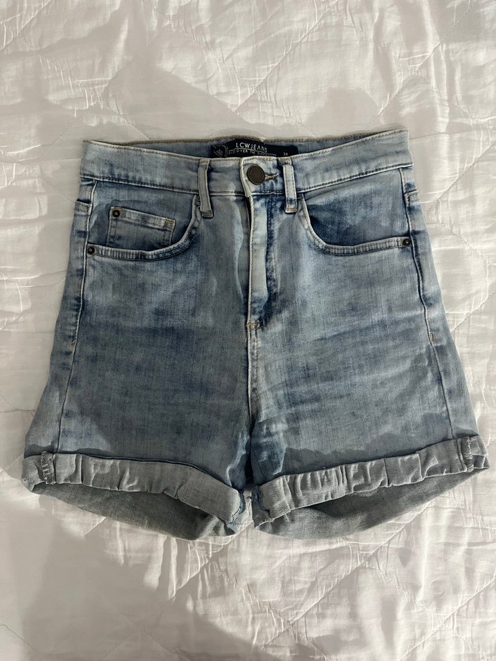 Gri mavi bağlama desenli, düğmeli ve fitted mini denim şort, günlük rahat sokak stili için uygundur.Kıvırarakta kullanıma uygundur.