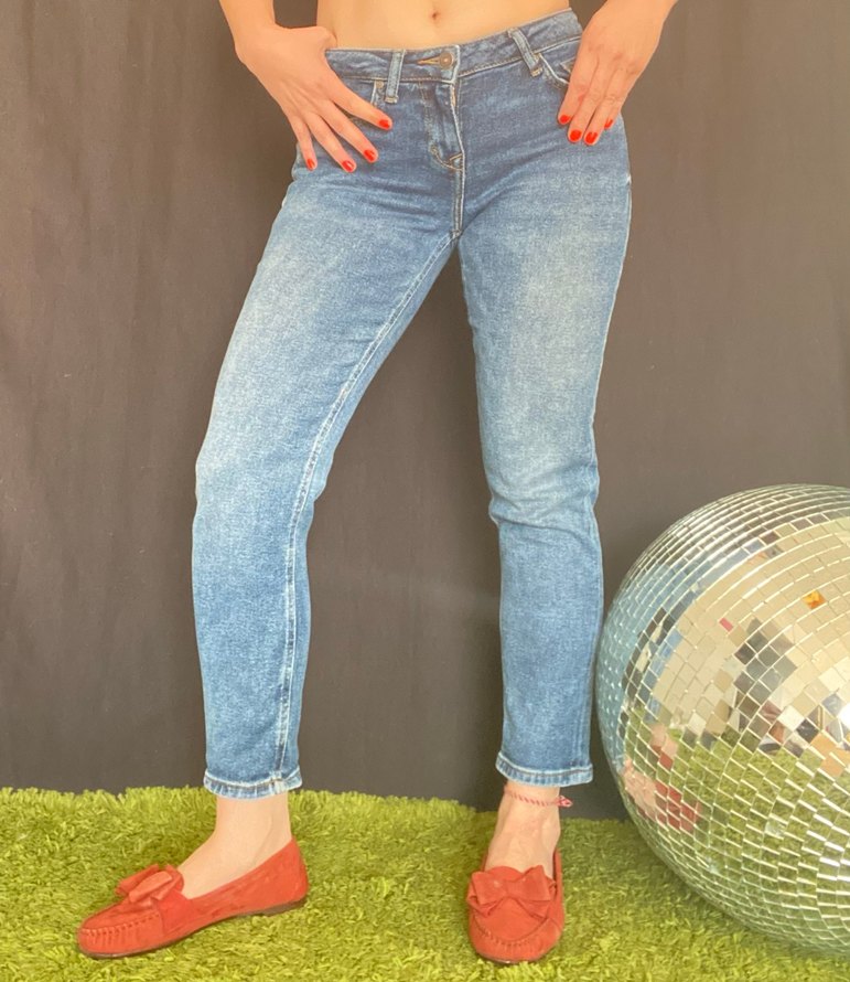 Gri Mavi Bağlamalı Desenli Kadın Jean