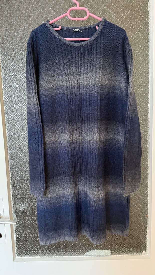 Gri mavi Batik Desenli Uzun Örgü Kazak