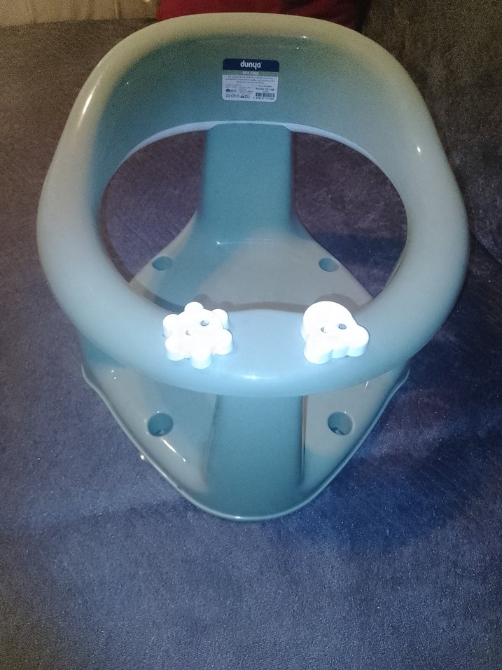 Gri ve mavi renkte, sağlam yapılı bir bebek mama sandalyesidir. Tepside eğlenceli beyaz oyuncaklar yer alır. hiç kullanılmamıştır