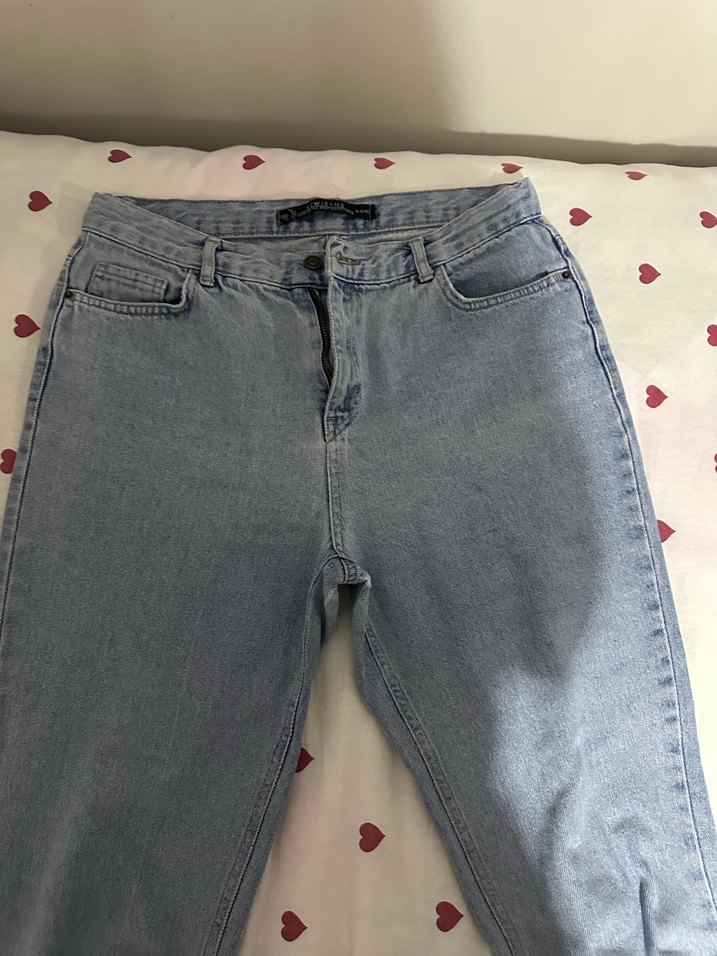 Gri mavi renkte, bol kesim ve midi boyda yumuşak denim kumaştan kadın kot. Günlük kullanım için rahat ve desen içermeyen sokak stili görünümü sunar.