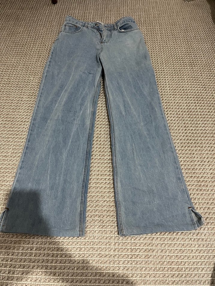 Gri mavi renkte, bol kesim ve midi boy kot pantolon. Birkaç defa giyildi temiz ürün