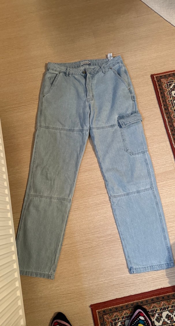 Gri Mavi Bol Kesim Midi Kot Pantolon