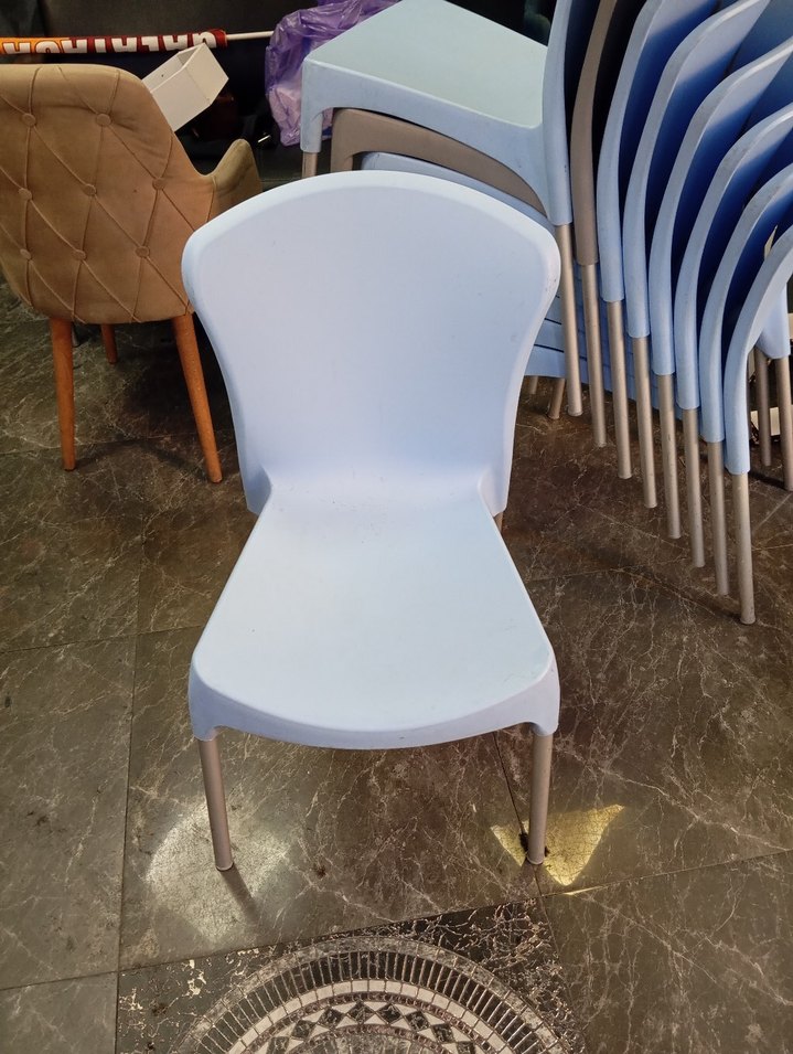 Gri mavi renkte, plastik oturma yüzeyi ve metal ayakları olan cafe sandalyesi Rahat ve dayanıklı yapıda. tanesi fiyatı