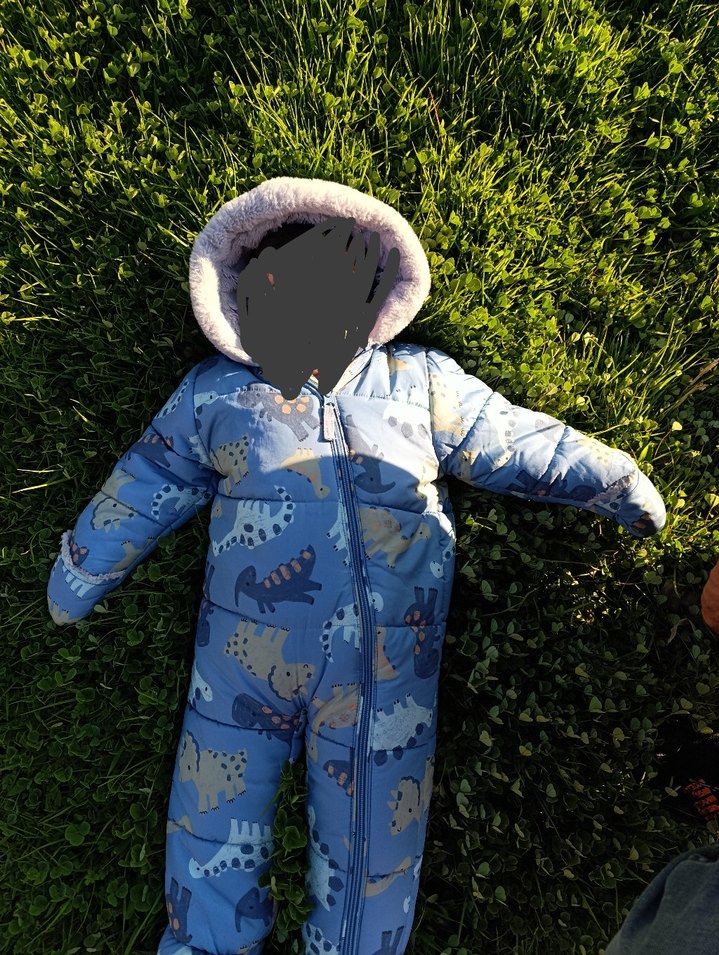 Bu bebek tulumu, yumuşak ve sıcak kumaştan yapılmış, kapüşonunda kürk detayları bulunur. Mavi ve gri tonlarında, batik desenlidir. ❄️ markası nutmeg İngiltereden alındı