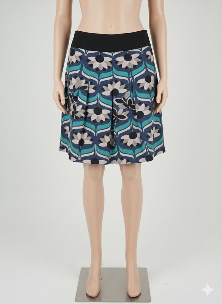 Bu midi hamile eteği, gri ve mavi tonlarda canlı batik desenle pilili ve bol kesimdir. Yumuşak sentetik kumaştan yapılmıştır, günlük kullanıma uygundur.