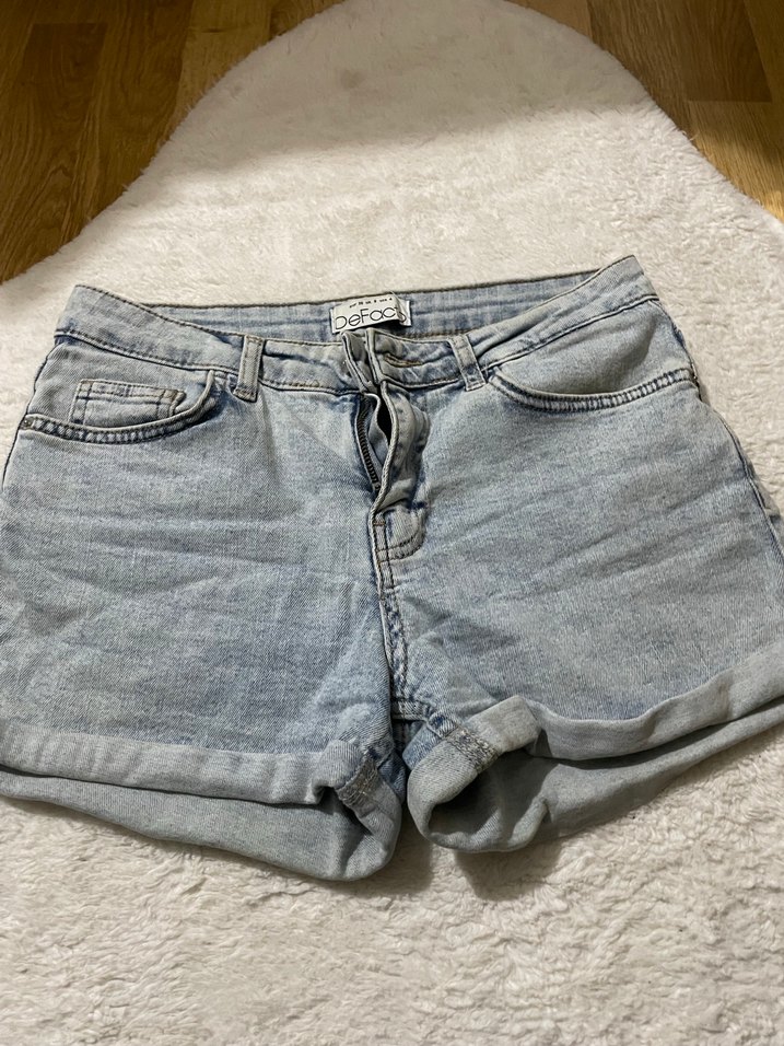 Gri Mavi Düğmeli Mini Denim Şort