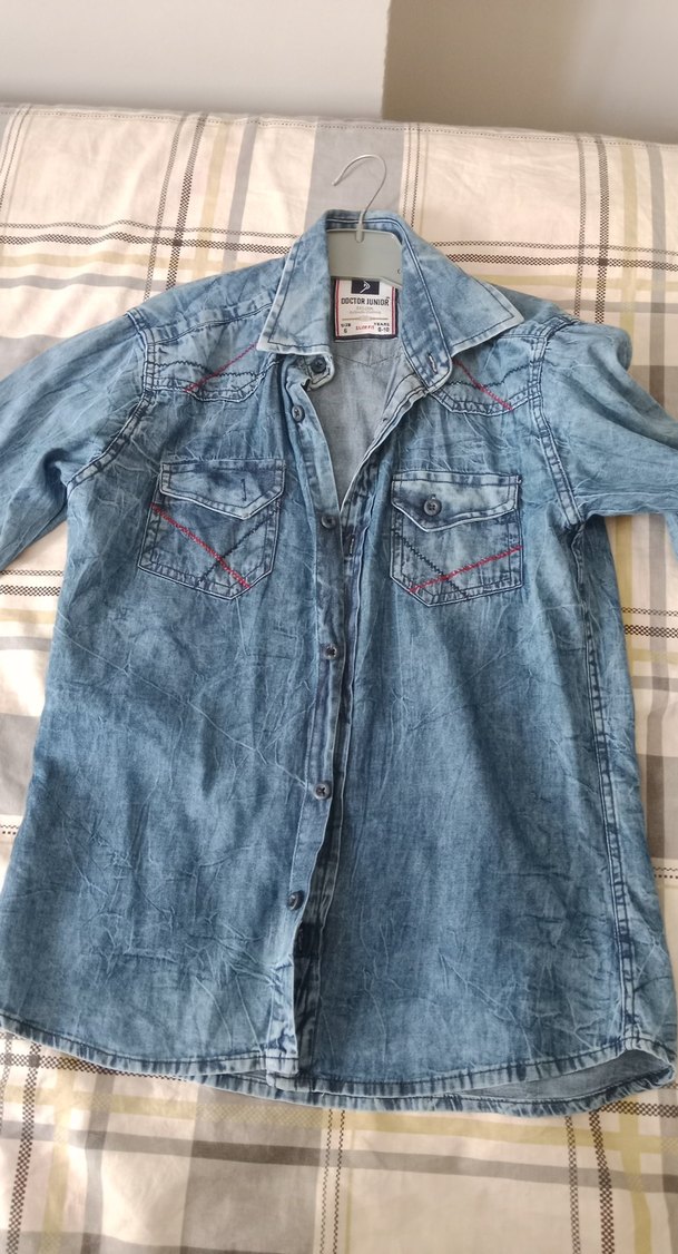 Gri Mavi Erkek Çocuk Denim Gömlek